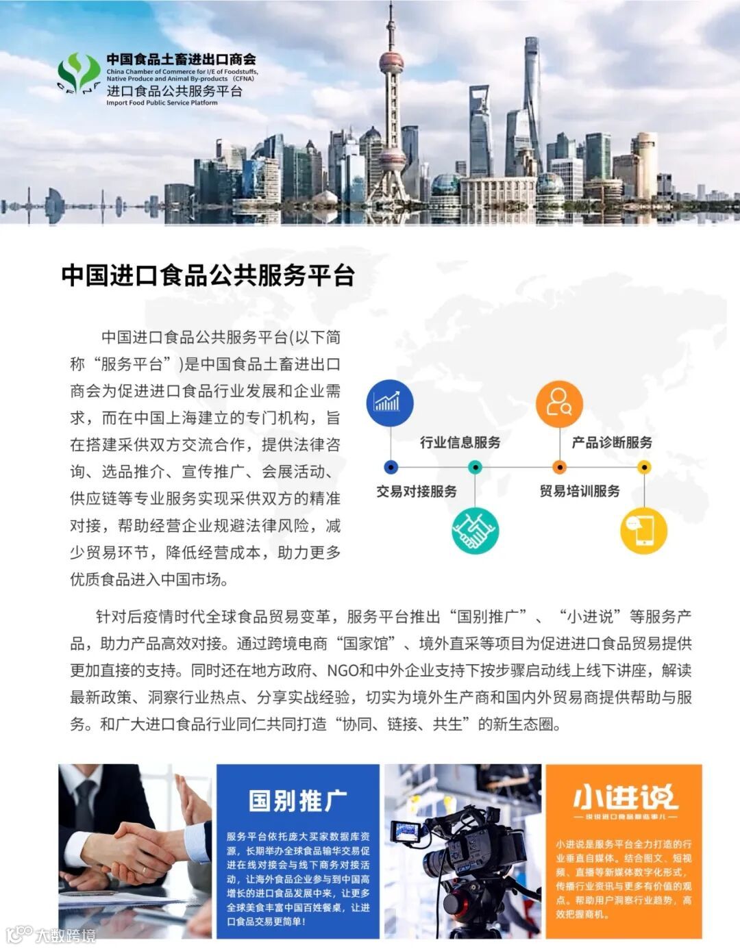 中国进口食品公共服务平台在2021年中国进口食品行业峰会上,推出“小进说”进口食品专业自媒体平台——中国第一个垂直于食品国际贸易、针对食品国际贸易话题开设的自媒体平台,覆盖食品进口商超过30000家。
