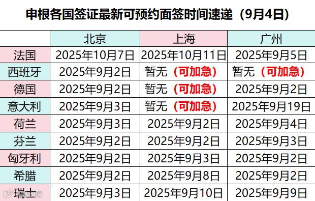 还在为申根签证预约发愁吗?当下几个领馆的预约号基本都排到9月底和10月份了,正常预约的话,时间实在太紧张,稍有不慎就可能耽误行程。别担心!我司可提供渠道加急面签服务,没有风险,成功率高!