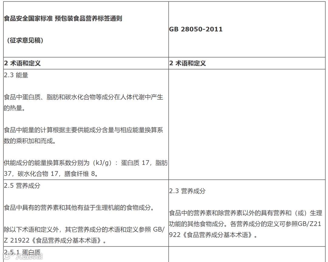 2021年9月26日,国家卫健委发布了《食品安全国家标准 预包装食品营养标签通则》(征求意见稿),本文比较了现行版GB 28050-2011,梳理出了此次征求意见稿的主要修订变化,供行业参考。
