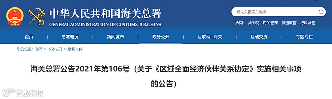 海关总署公告2021年第106号