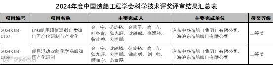 2024年中国造船工程学会科学技术奖评审结果揭晓,上海沪东造船阀门有限公司“LNG船用超低温截止类阀门国产化研制与产业化”、“船用浮动双向化学品蝶阀国产化研制”项目荣获科技进步奖二等奖。