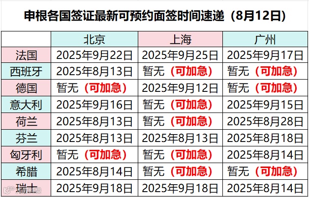 我司签证办理高效,且下签成功率极高!多年来,我们成功加急的案例数不胜数,加塞对我们而言就像探囊取物般轻松。不管您身处全国哪个地方,8月和9月想要加急预约,我们都能为您安排妥当,只要您有需要,随时联系我们!(有关签证办理欢迎后台咨询~)
