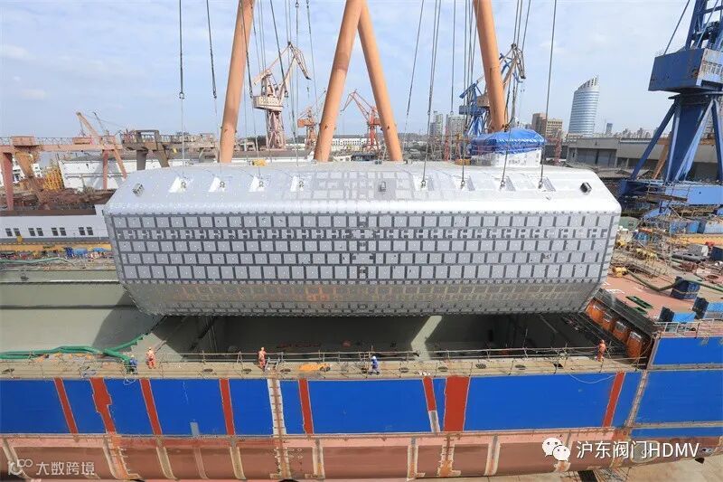 授权的B型舱液化天然气(LNG)围护系统,准确安全地吊运至正在该公司浦东船