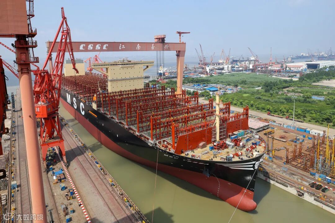 地中海航运公司集装箱船船队运力目前排名世界第一,在公司共订造了4艘24116TEU超大型集装箱船。同日,地中海航运的4号船也顺利入坞。目前,同时在坞内搭载的还有2号、3号船,形成了批量建造的壮观场景,根据计划首制船将于年内完工交付。