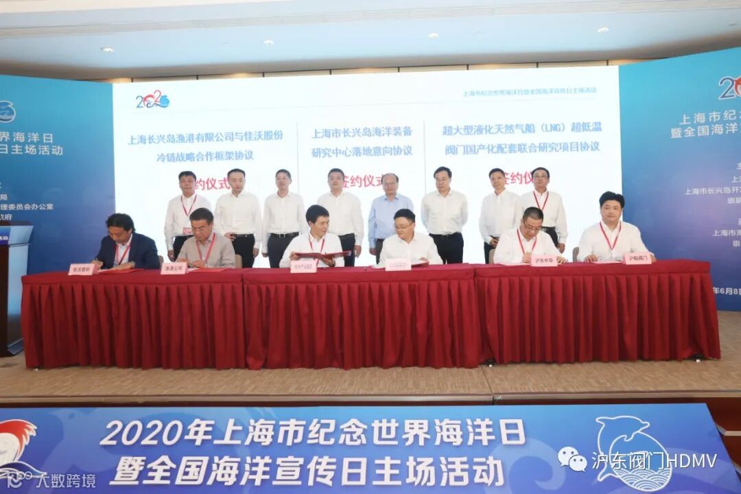 市水务局(市海洋局)党组书记、局长徐建,崇明区区委书记、市长兴岛管委会副主任、市长兴岛开发办主任李政,崇明区区长缪京等领导出席本次活动启动仪式。沪东中华副总经理迟本斌,副总工程师、LNG技术研究所所长潘伟昌以及沪东阀门总经理金宁应邀参加会议。在本次活动上,LNG技术研究所与沪东阀门的双方代表在迟本斌副总经理的见证下,共同签署了《大型液化天然气(LNG)船超低温阀门国产化配套联合研究项目》的合作协议。