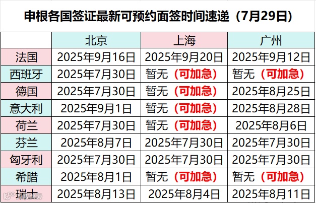 还在为申根签证预约发愁吗?当下几个领馆的预约号基本都排到8月份和9月份了,正常预约的话,时间实在太紧张,稍有不慎就可能耽误行程。别担心!我司可提供渠道加急面签服务,没有风险,成功率高!
