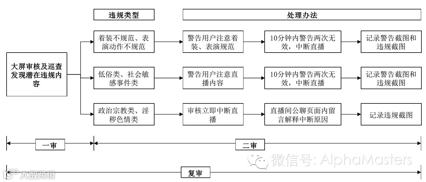 平台内容审核机制:六间房互联网演艺平台在运营中产生了大量用户实施生产的视频、文字和图片内容。六间房建立了一套立体、全方位的内容质量控制体系,以维持生态系统环境健康有序,并保证平台运营合法合规。