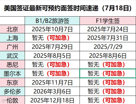 面签时间速递(7月18日)