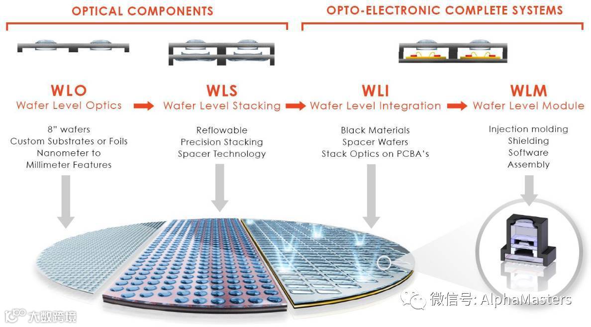 AMS收购的Heptagon向苹果提供3D Sensing中的WLO(3.5美金),目前除了AMS外别无替代的WLO供应商,其技术壁垒很高。