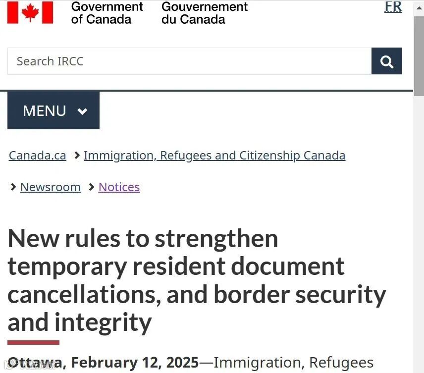 这一取消将包括电子旅行授权(eTA)、工作和学习许可、临时居民签证(TRV)。2025年2月12日,IRCC宣布了《加拿大移民和难民保护条例》,也包括移民文件的取消。