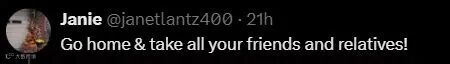 而相对冲动的网友则是对此作出了最直接的指责:“回家吧!带上你的亲朋好友一起回!”
