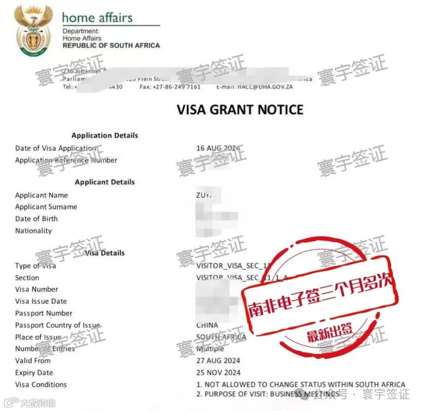 最近成功为这位申请人办理到了南非电子签,有效期为3个月多次,出签速度非常快,没有耽误行程。