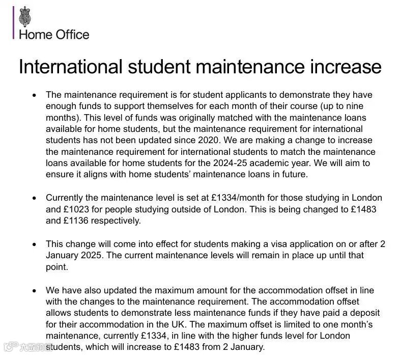 此外,英国内政部还对留学生的生活费用标准进行了调整,提高了每月的生活费用要求。这也意味着,在2025年1月2日之后申请英国学生签证时,需要预存的留学保证金金额增加;之后也需要准备更多的资金,来支付在英国的生活费用开销。