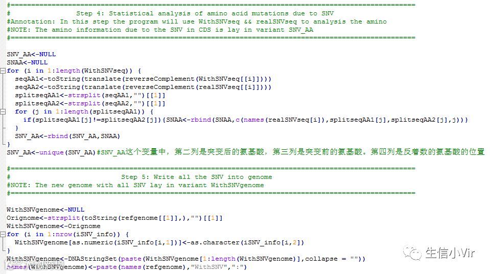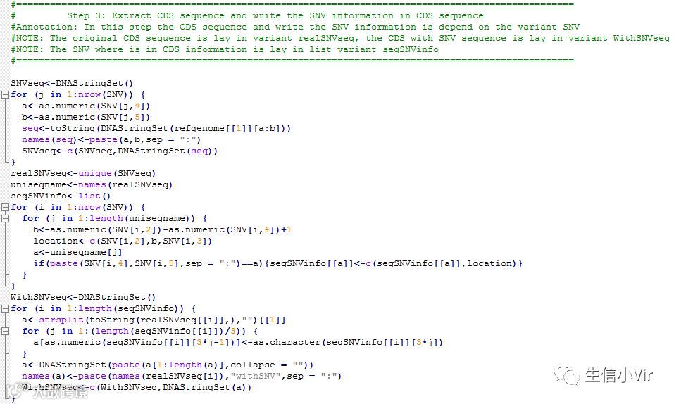 根据文件中CDS的起始结束位置可以通过编程手段采用二分法判断SNP/SNV是否在CDS内。大体思路为:1.首先根据预测的CDS文件,将预测的所有CDS坐标信息读入,上表中CDS后面的数字代表CDS的起始与结束位置。2.读入组装的参考基因组,和SNV/SNP文件。3.根据CDS坐标信息提取CDS序列,并根据SNV文件将SNV写入。4.统计因为SNV/SNP的写入导致的氨基酸突变。5.将所有的SNV/SNP写入参考基因组。最后可视化。具体代码如下