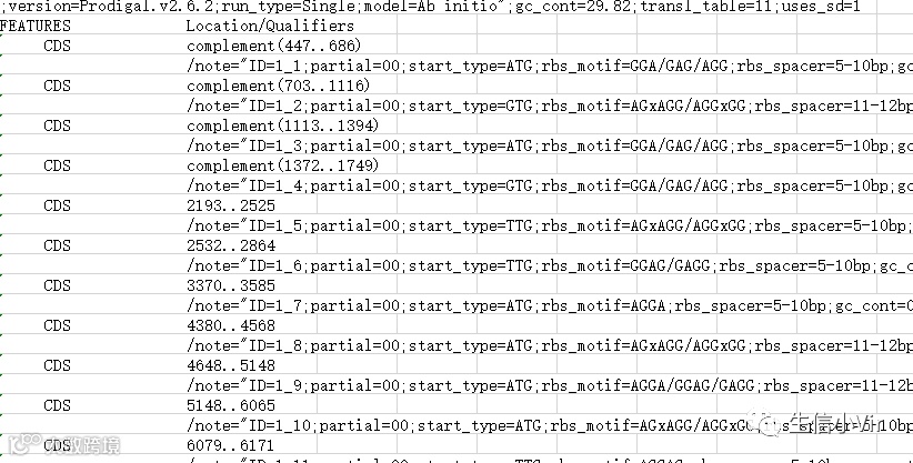 另外要分析SNV或SNP发生的位置是否为CDS,还需要对参考基因组进行分析。如果没有参考基因组的gff文件,通常用Prodigal进行预测CDS。例如我的参考基因组并没有人研究过,没有注释信息。所以我用Prodigal预测结果如下