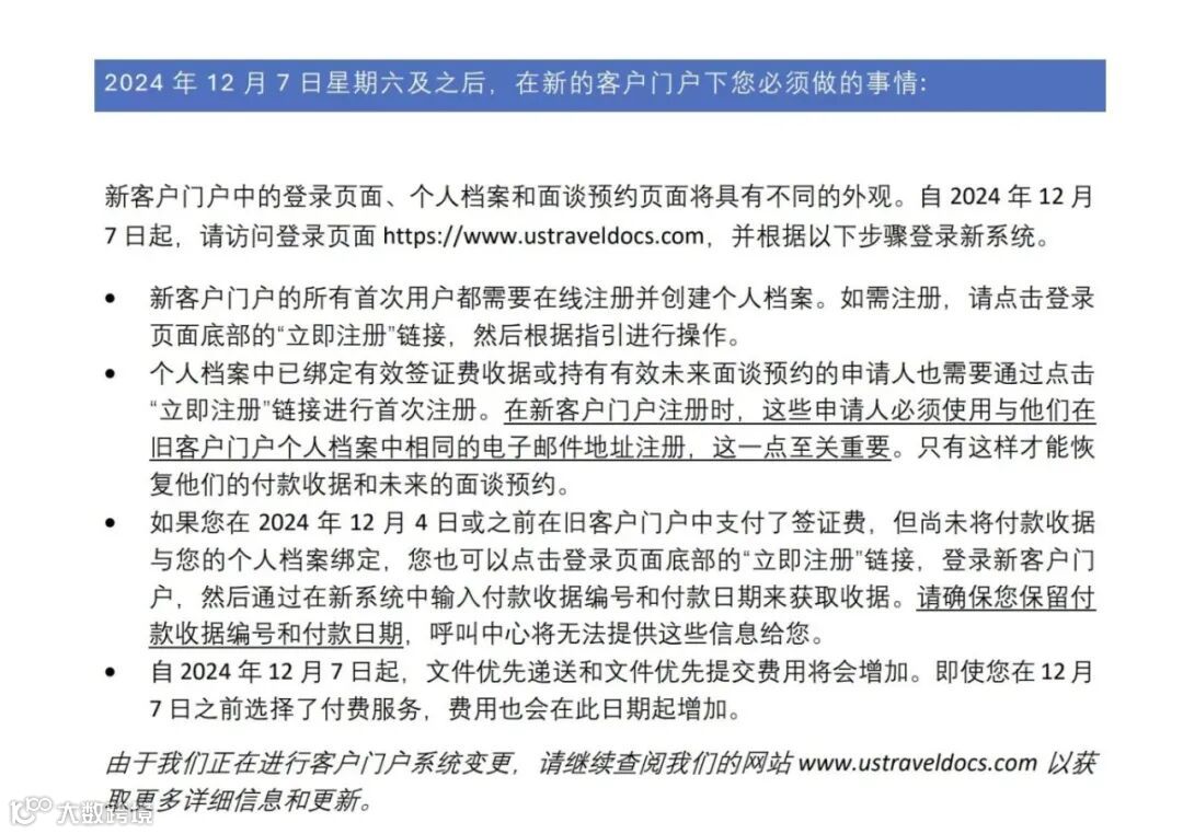 最近,美国签证预约系统官网发布了一则通知,通告全体申请人,2024 年 12 月 7 日(星期六)全新的美国签证服务系统将正式启用。