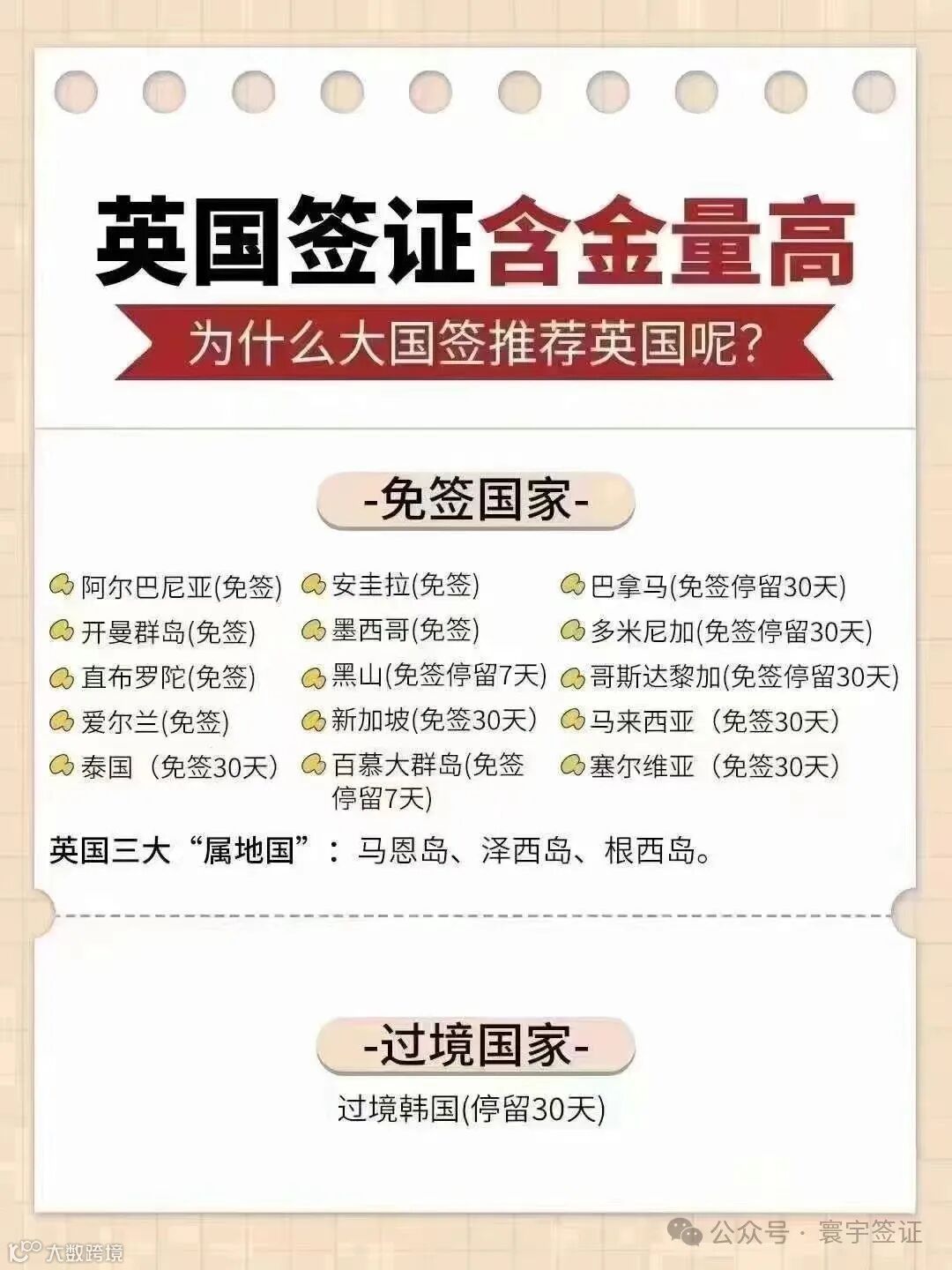 持有英国签证可以免签以下国家,并且对您未来申请其他发达国家的签证有很大的帮助。