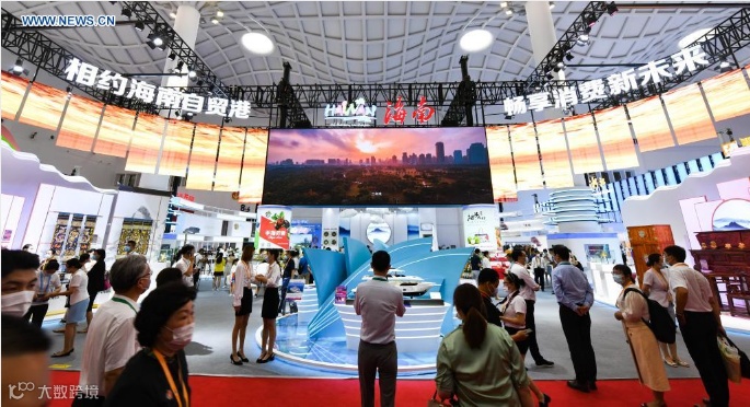 People visit the Hainan Exhibition Area during the first China International Consumer Products Expo in Haikou, capital of South China's Hainan province, May 7, 2021. [Photo/Xinhua]