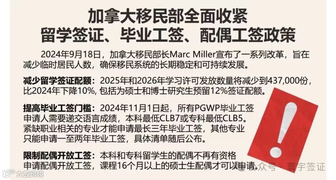 根据新政策规划,加拿大预计在2025年向全球国际学生发放的留学签证数量将缩减至43.7万份,相比之前年份有显著下降。此外,政府还计划对国际学生及其临时外国工人配偶的工作签证申请设置更多限制条件,并在旅行签证审批过程中加强筛查力度,旨在剔除非真实访问意图的申请者,进一步控制非必要临时居留者的流入。