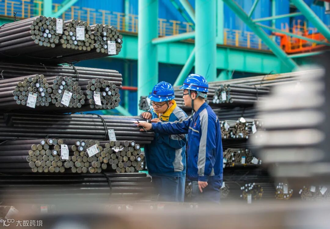 Workers check steel product quality at a unit of Magang Group in Ma'anshan, Anhui