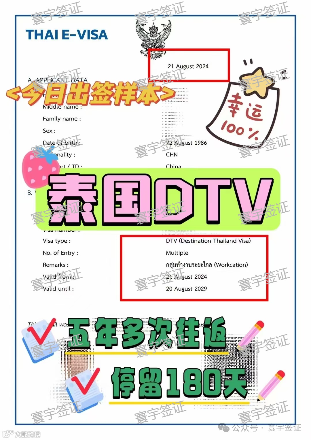 恭喜这位申请人获批了泰国DTV签证,该签证可以五年多次往返,停留180天。DTV签证全称是目的地泰国签证(destination Thailand Visa)~ 成功获批DTV签证的申请人允许在五年的时间里多次出入境,且可以带家人一起,来泰国感受东南亚风情,性价比超级高~