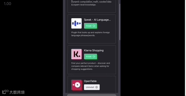 在ChatGPT上面的显示是这样的,用户可以自行选择插件并下载。