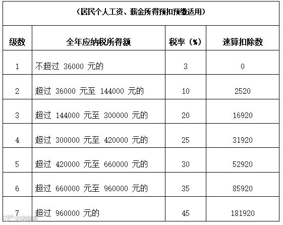 居民个人工资、薪金所得预扣率表
