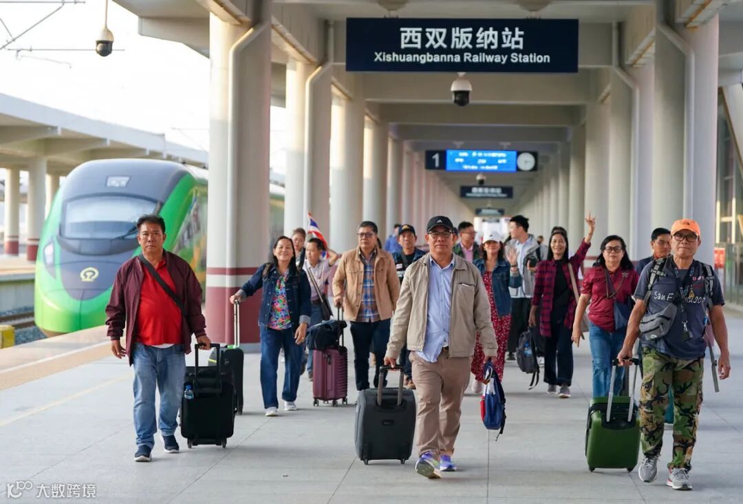 On Tuesday evening, a group of 15 tourists from Thailand and Laos walked out of the China-Laos Railway's Xishuangbanna station, greeted by a water-splashing ceremony and a lively dance performance.