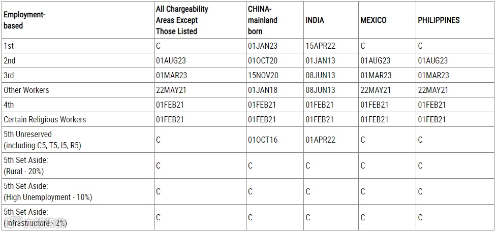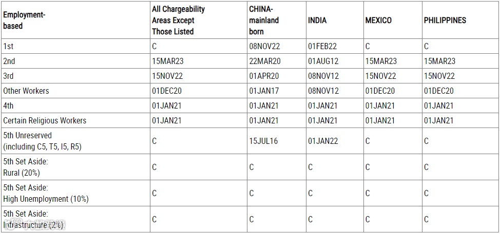 EB-3(非技术劳工)类别排期为2017年1月1日,原地踏步;