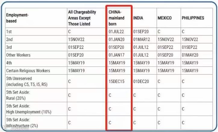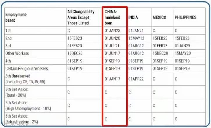 EB-3 (非技术劳工):排期排到2017年01月01日,原地踏步;