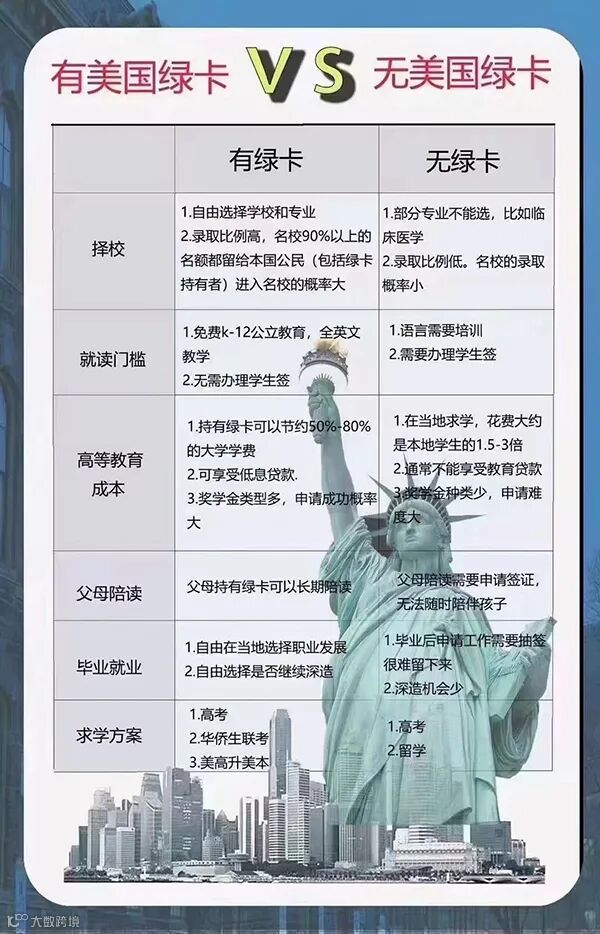 有美国绿卡和无美国绿卡的区别对比图