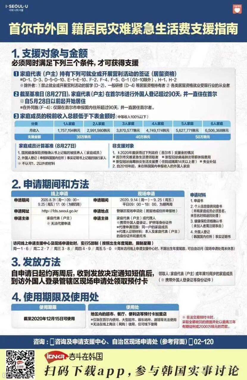 韩国首尔市从下周一开始将为居住在首尔市的外国籍登录者提供居民灾难紧急生活费支援。