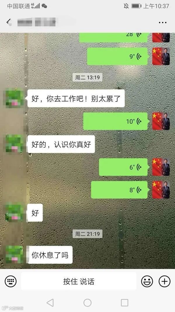 该男子自称名叫许山海(事后证实为假名),发来的照片看上去高大帅气、成熟稳重(事后证实非本人),言谈举止也是一副成功人士的模样。两人成为好友后,该男子十分殷勤,每日嘘寒问暖,让刘女士感受到了久未有过的温暖。