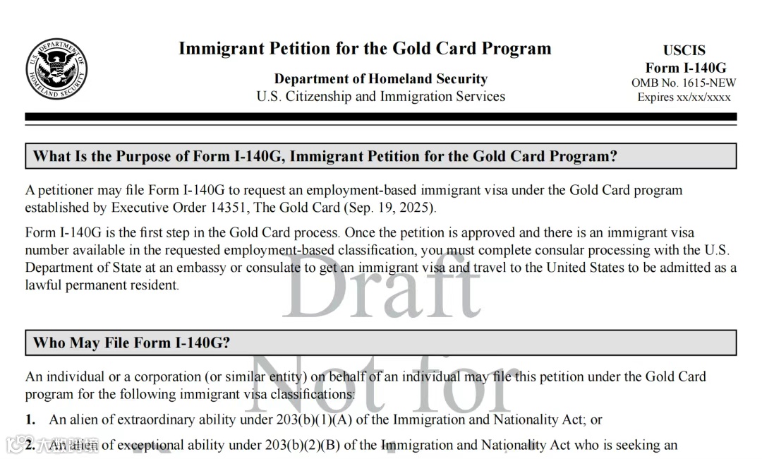 近日,备受关注的美国“金卡”计划已于本周取得关键性进展——其专属申请表格I-140G已正式发布并获快速批准。这标志着该项由行政令推动的新政,正式进入落地倒计时。