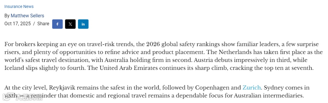 素材来源:https://www.insurancebusinessmag.com/au/news/breaking-news/american-insurer-gives-australia-silver-medal-in-2026-rankings-553319.aspx