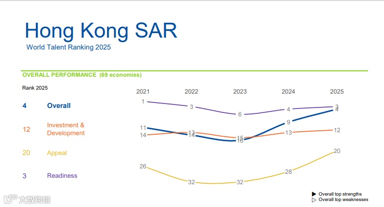 近日,由瑞士洛桑国际管理发展学院发布的《2025年世界人才排名》中,香港从去年的第9位跃升至第4位,位列亚洲之冠。