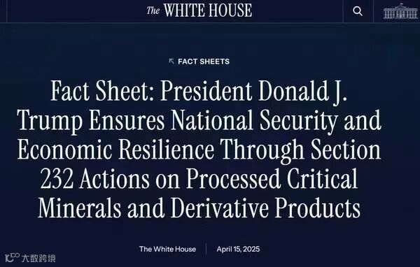 美国声称,由于中国采取了报复性措施,因此对中国输美商品实施更高的关S。此次白宫行政命令,更是以国家安全为由,对关键矿产进口展开调查,为进一步提高关S寻找借口。