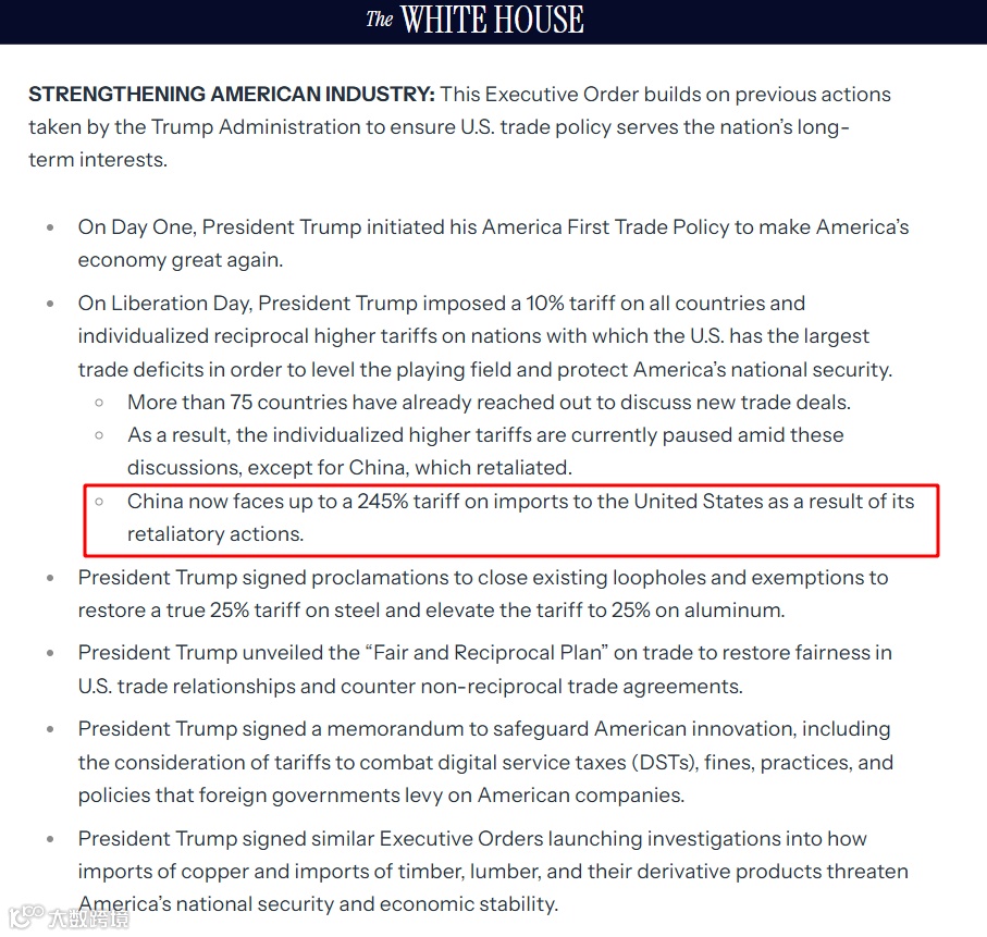 1、美国政府将对中国关S加至245%!
