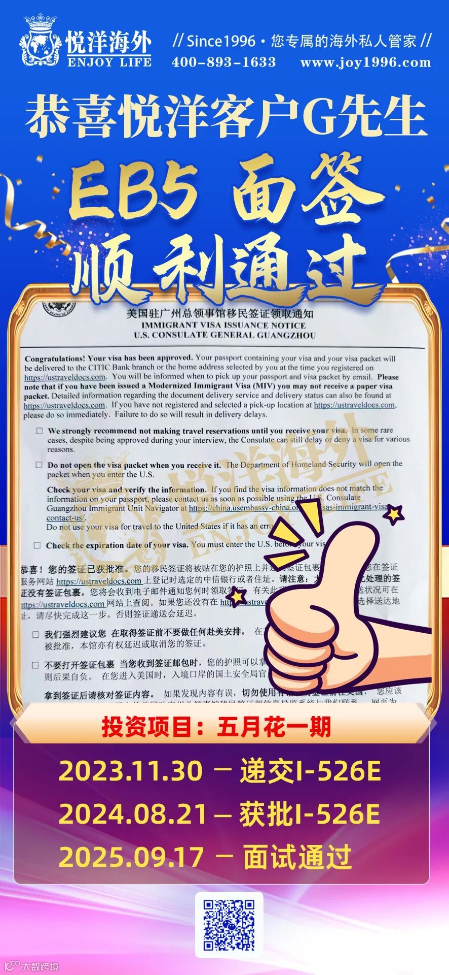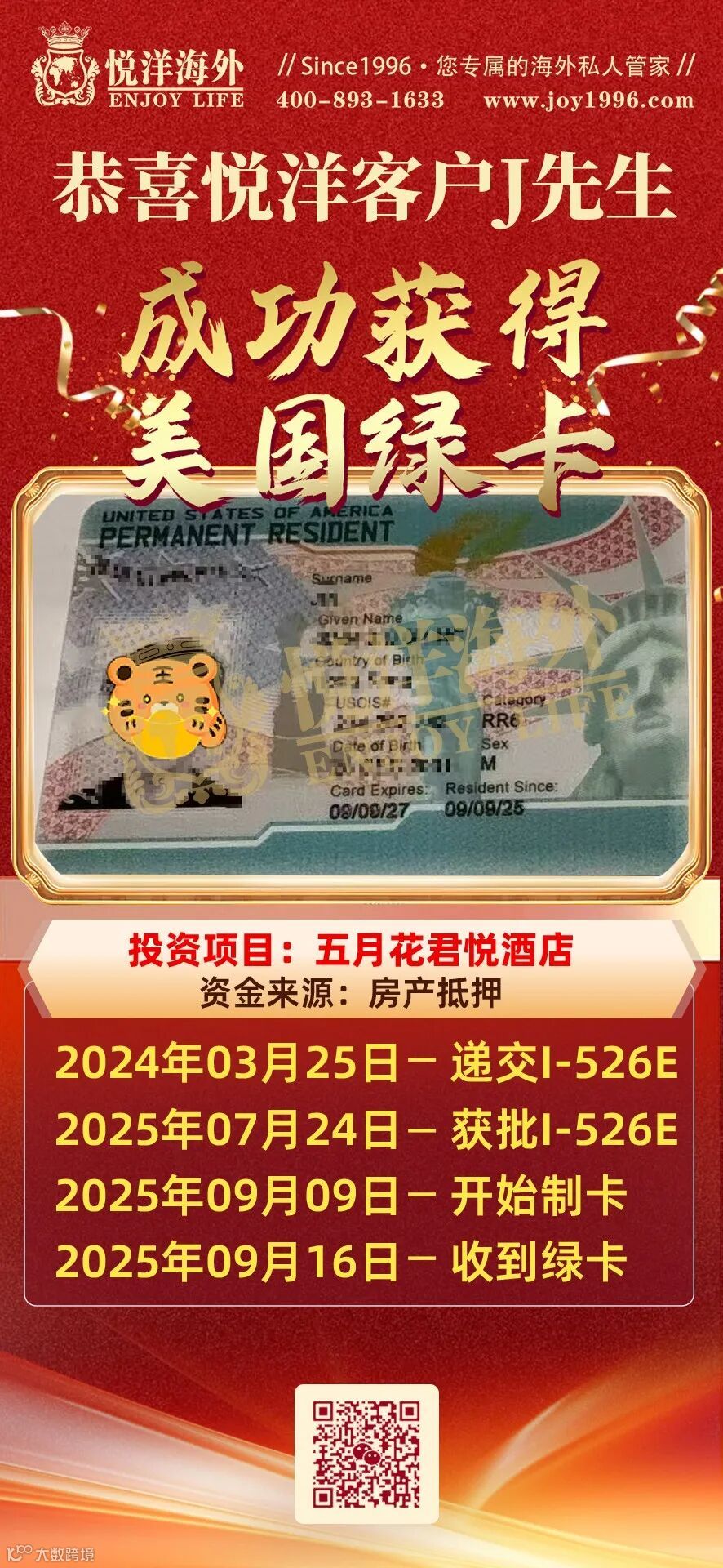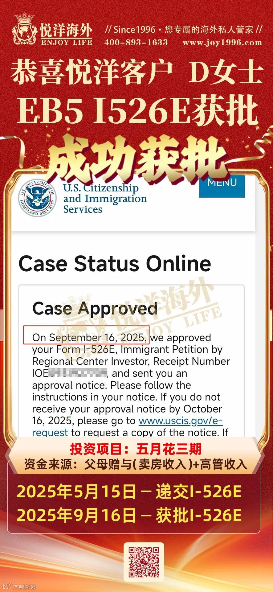 9月丰收季,喜讯如期而至!悦洋海外再次以专业实力刷新速度纪录——我们近日连续助力3组客户成功获批美国EB-5投资移民,其中一位客户仅用时4个月便锁定绿卡!