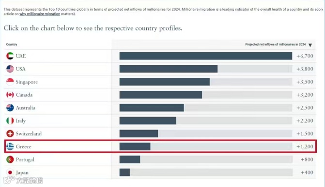 根据《新世界财富》的调查,2022-2024年期间,约有1200名百万富翁从世界各地移居希腊,成为全球第八大受欢迎的移民国家。