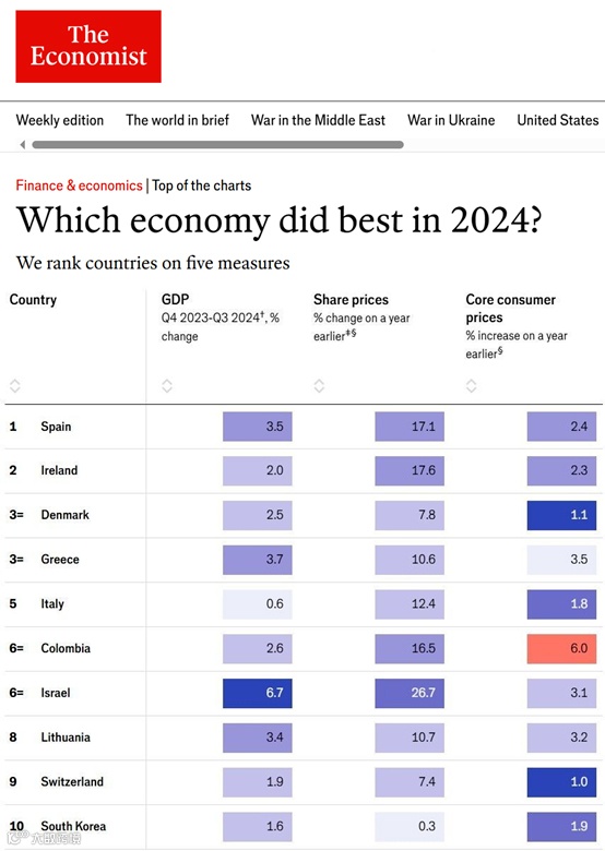 2024年《经济学人》最新报告显示:希腊以3.7%的GDP增长+2.1%财政盈余+近十年来最低水平的失业率,一跃成为全球经济Top3,和丹麦并列,仅次于西班牙和爱尔兰。