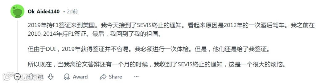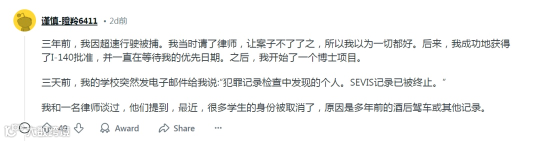 在众多被终止 SEVIS 的案例中,因犯罪记录被重提而导致身份终止的情况尤为引人注目。