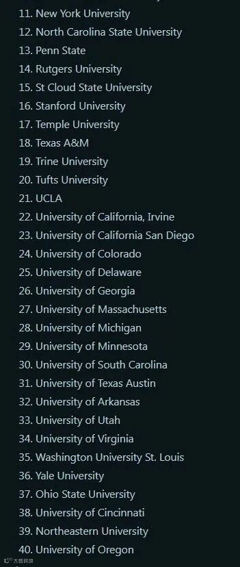 除了这些顶尖名校,还有许多其他高校也受到了影响,如亚利桑那州立大学、波士顿大学、佐治亚理工学院等。