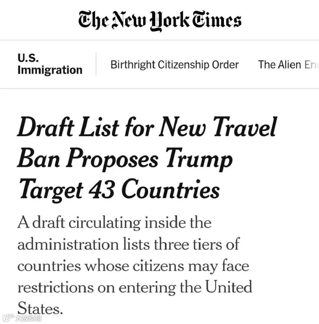 美国政府最近酝酿了一项新规定,要对43个国家的公民收紧入境,甚至有些国家的人民以后连签证都拿不到了!