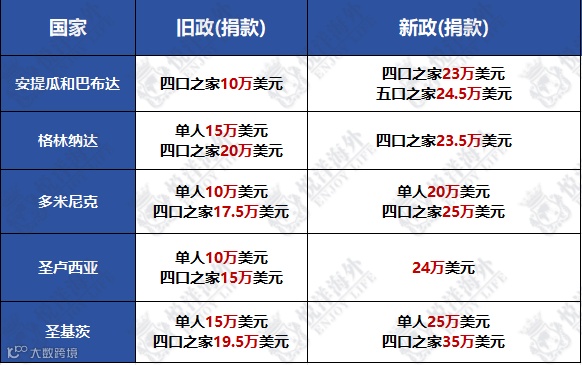 这一公告意味着,加勒比地区的五个国家的投资入籍计划,在今年全部正式迈入20万美金行列!
