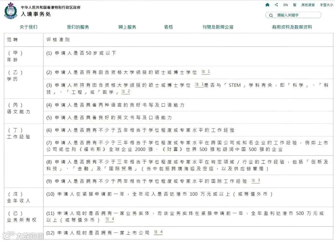 11月1日起,根据香港入境处官网更新的信息,新的优才政策取消了之前的打分制,而是直接列出12项标准,其中符合6项就可以申请!