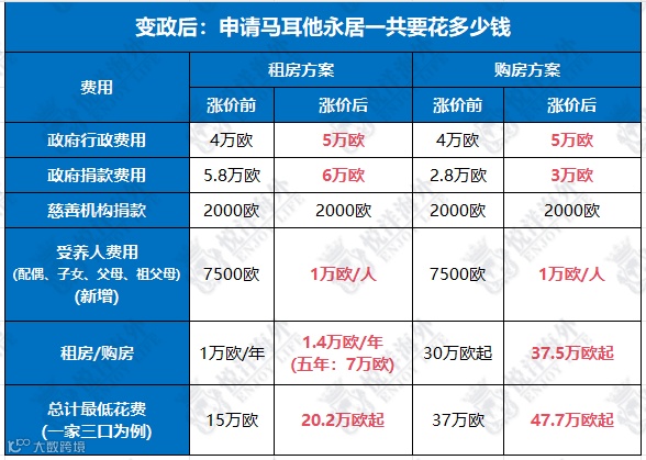 新政实施后,马耳他移民的整体成本将显著上升,预计一家三口的办理成本将增加40万至85万人民币不等。