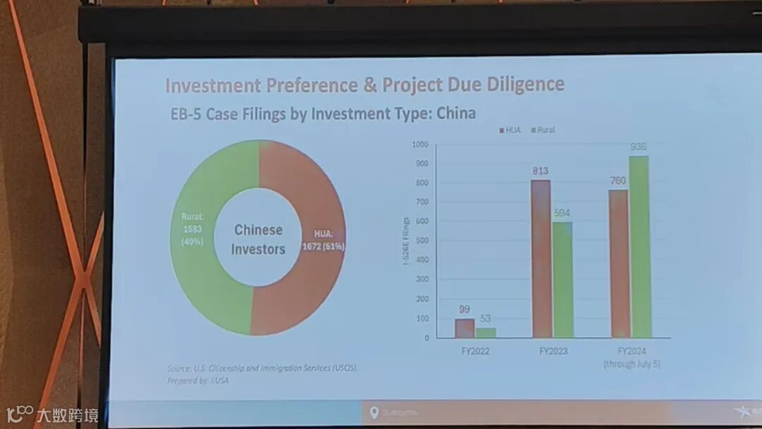 IIUSA统计了从2022财年至2024年7月,中国投资人的投资偏好,49%的人选择了乡村项目,51%的人选择了城市项目。