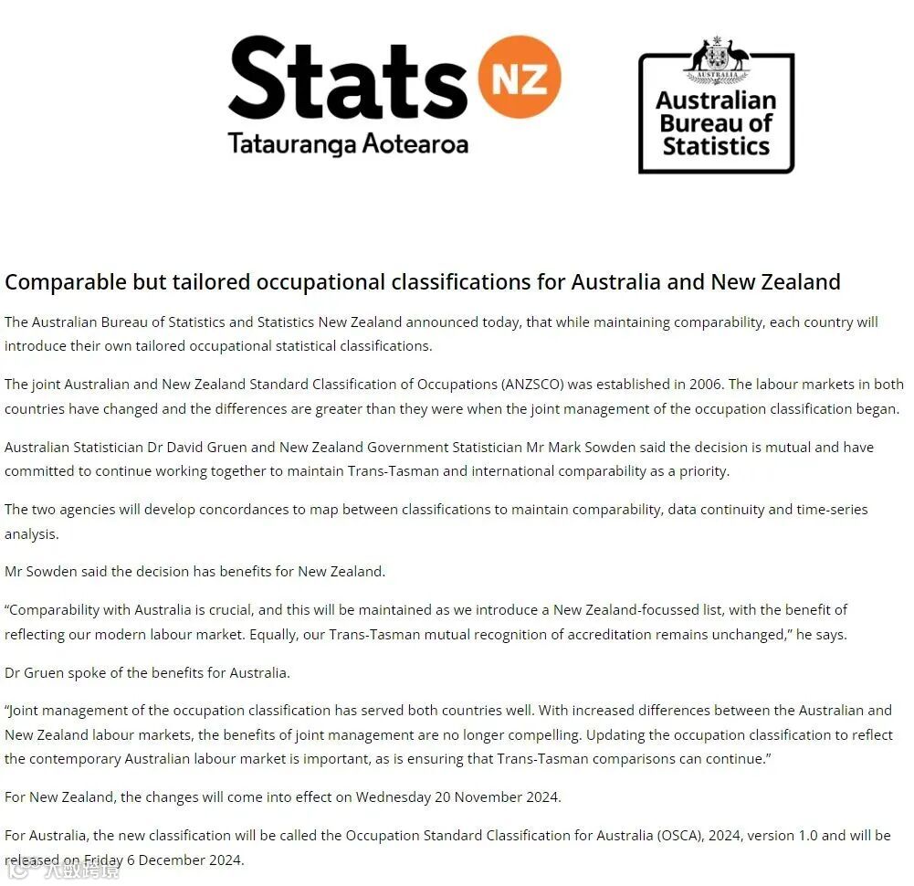 近期,澳洲统计局(ABS)和新西兰统计局(Stats NZ)正式宣布,两国将在保持职业分类标准可比性的基础上,推出各自独立但相互协调的职业分类标准。
