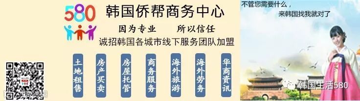 韩国生活580--是韩国影响力最大的便民平台,为在韩华人提供投资,经商,旅游,招聘求租,房屋租售,吃喝玩乐等综合服务信息。并且在韩国拥有线下实体服务团队,我们专业和效率将使您在韩国生活和投资更加美好